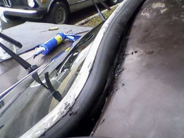 На следующий день скотч снимается и производится мойка лобового стекла и прилегающих участков кузова. В этот момент можно проверить и герметичность получившегося шва. Если обнаружилась протечка, то следует дополнительно проклеить как внутренний периметр, так и внешнюю сторону шва. Когда будет достигнута 100% герметичность, можно полностью собирать автомобиль.