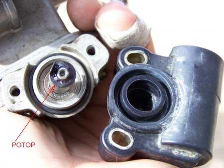 Самая распространенная причина выхода из строя датчика холостого хода, это попадание на него масла из системы выпуска катерных газов, проще говоря, из сапуна. При попадании данной жидкости на иглу датчика, происходит коксование из-за того, что дроссельный механизм постоянно нагревается с помощью водяной системы.