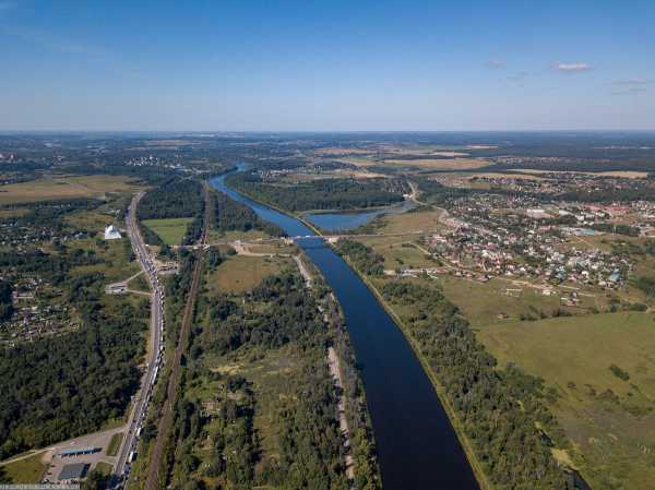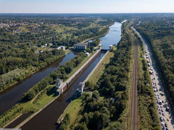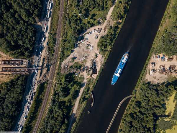 10. Дмитровское шоссе, Савеловская железная дорога и канал имени Москвы с какой-то посудиной.