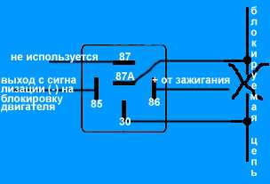 В данном случае следует использовать другую схему блокировки (реле будет разрывать защищаемую цепь только при включении зажигания).