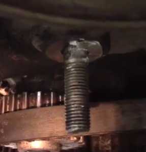 3. Наиболее распространенной причиной является изгиб шпильки крепления натяжного ролика, при неквалифицированной замене. «По букварю» момент затяжки гайки эксцентрика ролика составляет всего 4,2 кгс/м, а если затянуть «от души», то шпилька м10 может слегка подогнуться, а даже 0,1 мм смещения будет вполне достаточно для сползания ремня в сторону. Выправить шпильку практически нереально. Как вариант можно попробовать вывернуть ее из блока и ввернуть другой стороной. У меня такой вариант проходил. Но есть способ лучше. Описан в журнале «За рулем». Картинки оттуда же.