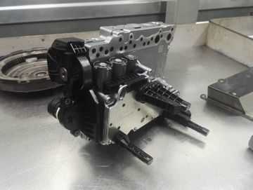 Анализируется коробка передач. Происходит демонтаж и разбор механизма. Обнаружение дефектов механизмов и узлов коробки. Замена мехатроника, расходников, повреждённых составляющих. Выравнивание сцепления и позиционера. Собирается коробка передач. Заливается масло, которое рекомендуют производители коробки.