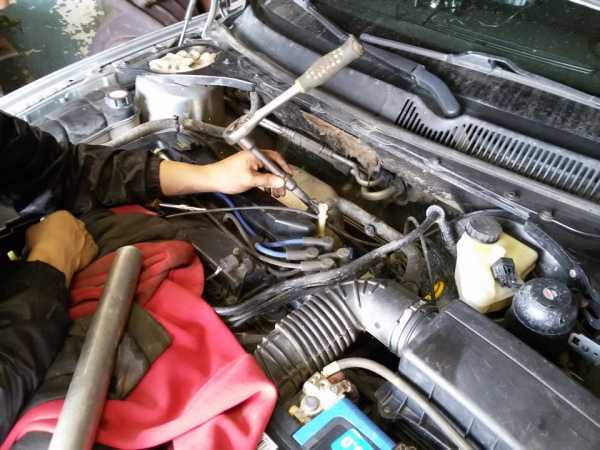Думаю, что хорошей идеей будет слить жидкость из системы ГУР. Я действовал по хайнесу (почти) и как результат весь пол гаража был залит маслом. Кстати, хайнес также пишет, что нужно снимать переднюю и заднюю опоры двигателя. Я не понял зачем это нужно (возможно для освобождения места под U-образный ключ) и этого не делал.