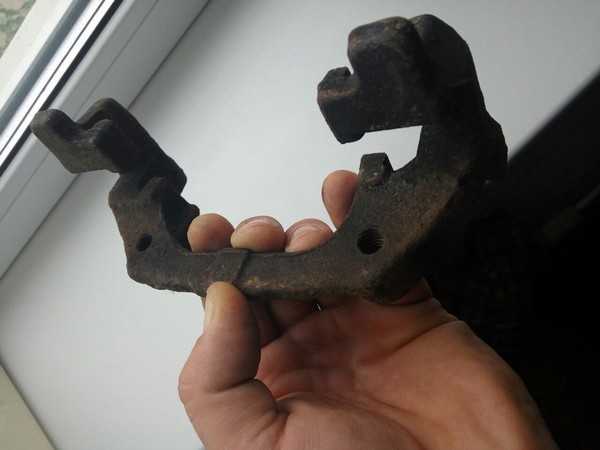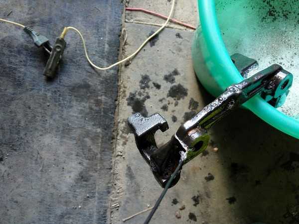 Все это оставляем на пару часов и вынимаем по завершению вот такую деталь. Осталось немного пройтись щеткой по металлу. Ржавчина при этом слезет как старая шкура.