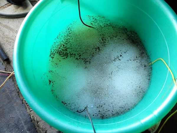 Ход работ по очистке тормозных суппортов электролизом Ford Focus 2: берем ржавые детали тормозного механизма и погружаем в воду с добавлением очистителя для труб (в моем случае, Крот) К самой детали прикручиваем провод МИНУСОВОЙ (-), а на ПЛЮС (+) вешаем пластину из нержавейки. Все это не должно замыкать между собой, поэтому использовать лучше пластмассовую тару.