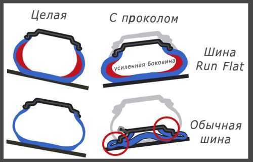 Как видно из него, обычная резина и run flat различаются толщиной боковины. Технология, обеспечивающая создание нового типа шины, предусматривает значительное ее усиление.