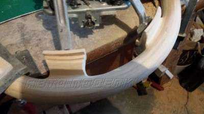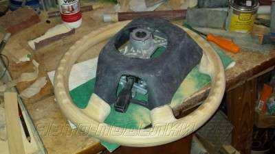 Начинает макетчик. Задача: изготовить на ободе руля верхнюю и нижнюю вставки под дерево из стеклопластика. Размеры (диаметр и форма) вставки под дерево не должны отличаться от заводских размеров обода, т.е. нужно повторить форму родного обода руля, только из твердого материала.