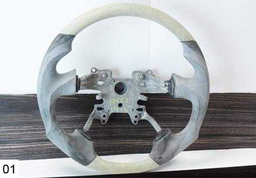 02. Если не уверен, что сможешь закончить вставки под дерево, не потроши руль. У меня, например, уже есть матрица на это руль дерево и я смело срезаю фрагменты резины. Резина обода легко режется и рвется.