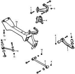 * Болты крепления продольного рычага задней подвески: 100–120 Н•м