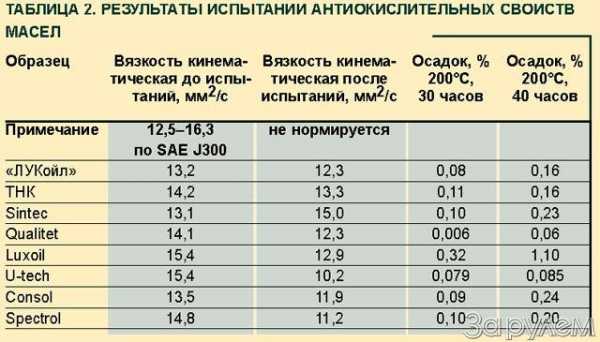 Третья таблица — самая скромная, но, возможно, самая показательная. В ней результаты наиболее доходчивого испытания — проверки масел на склонность к лакообразованию.
