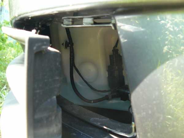 Способ, который мы будем описывать, может применяться лишь при небольшом количестве жидкости в бачке. Его суть заключается в использовании штатного насоса омывателя. Необходимо включить его и дать возможность выкачать жидкость из ёмкости. Он не должен работать долго, поскольку электродвигатель может выйти из строя. Потому этот способ не всегда может применяться. При большой заполненности ёмкости придётся выливать жидкость принудительно, любым, возможным способом.