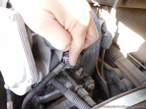 Далее отсоединяем разъем от дроссельного узла, нажав на пластиковый фиксатор сбоку.