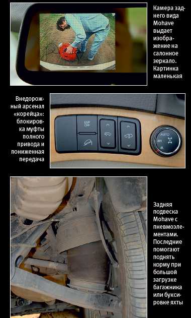 Mohave сконструирован с белого листа. Он с легким рулем и приятен внутри. Обзорность как в кинотеатре. Кузов поглотит яхту – не нужно таскать ее на прицепе. Динамика шестицилиндрового дизеля настолько бодра, что большой бензиновый V8 плачет в углу. Однако ни в какие ворота не лезет подвеска. Ее сделали независимой «по кругу», сзади и спереди. К чему такие траты, когда настройки ее убивают? Я выбираю «японца», потому что не выдержу ежедневной, как бы сказать, воздушной акробатики в обнимку с вибратором.