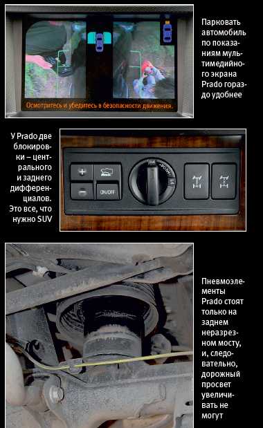 Toyota Land Cruiser Prado тоже не образец. Внешний вид как у корыта, которое никому не обязано нравиться. Обзор через ветровое стекло ужасен, словно едешь в соломенной шляпе с полуметровыми краями. Функциональность передней панели на уровне конструктора, который необходимо собирать на ходу, не отрываясь от управления. Плавность хода деревенская. Руль интравертный. Все какое-то недоделанное. Этот автомобиль уже шестнадцатый раз переделывают из старой болванки. Таким макаром ничего путного не добьешься.