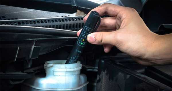 Чтобы узнать, как много воды содержится в тормозной жидкости, можно использовать специальный прибор. Он продается в специализированных автомобильных магазинах, а также на Aliexpress и в подобных магазинах. Стоимость прибора не более $10, а его задача – определять, как много воды скопилось в тормозной жидкости. Прибор очень простой в использовании, и его не помешает иметь каждому автовладельцу.