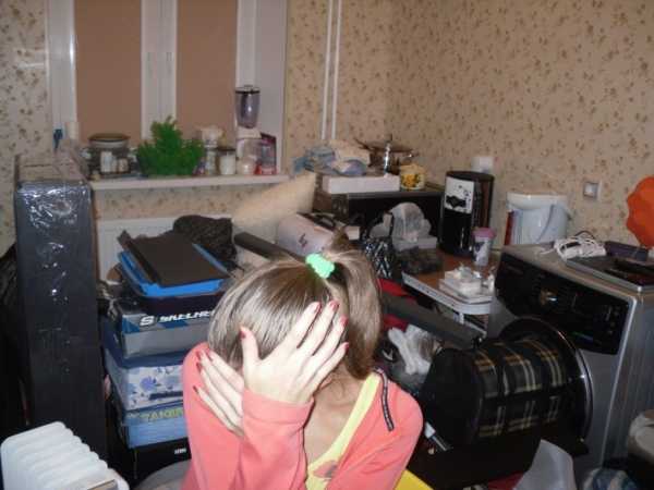 Через 3 дня всё становится ещё сложнее. Все вещи перемещаются на кухню, потому что вся комната на неделю занята стройматериалами для отделки балкона.