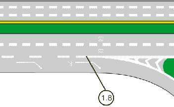 (широкая прерывистая линия) — обозначает границу между полосой разгона или торможения и основной полосой проезжей части (на перекрестках, пересечениях дорог на разных уровнях, в зоне автобусных остановок и тому подобное).