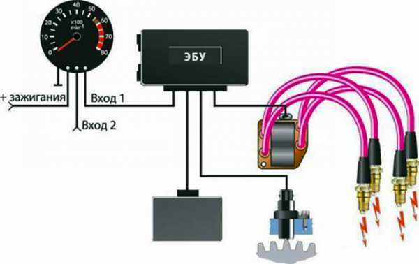 Прибор имеет три вывода, к двум из которых подключается “плюс” от замка зажигания и “масса”, а к третьему — провод от катушки зажигания или ЭБУ двигателя.