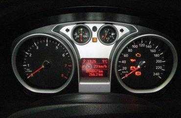 Серебристая приборная панель Форд Фокус (Ford Focus) выглядит довольно стильно, приборы выполнены в «колодезной» стилистике — притоплены вглубь панели, между ними расположен прямоугольный дисплей, на который выводится самая необходимая информация — время, температура двигателя, средняя скорость движения, расход топлива и пробег. Отсутствие лишних деталей, способных отвлечь внимание водителя, все четко, информативно и по делу.