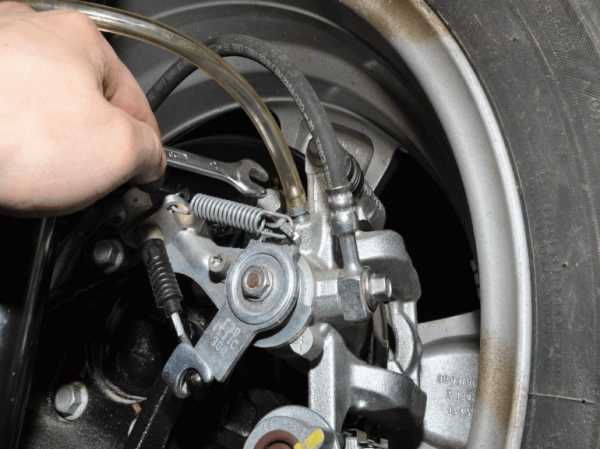 Примечание. Перед заменой на каждый клапан надевается отводящий шланг, другой конец которого опускается в подходящую емкость. Таким образом можно предотвратить повреждение шин и лакокрасочного покрытия на деталях подвески, тормозов вытекающей тормозной жидкостью.