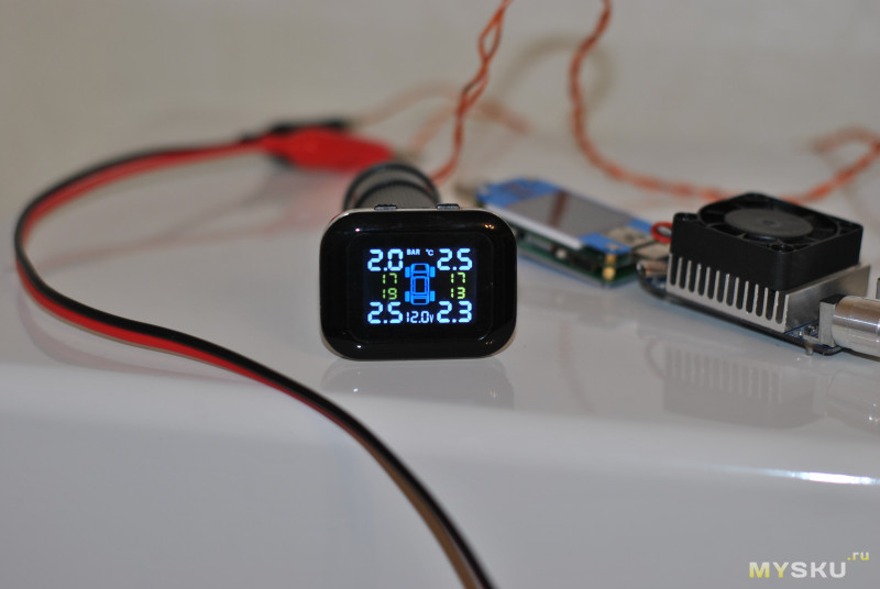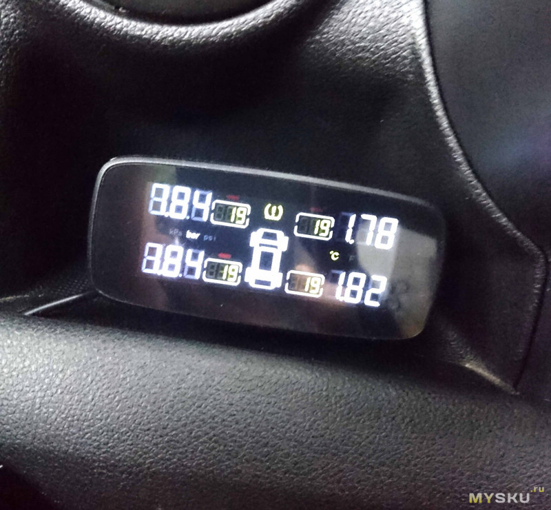 Во время работы, прибор устанавливается в салоне машины и показывает текущую информацию о состоянии колес.