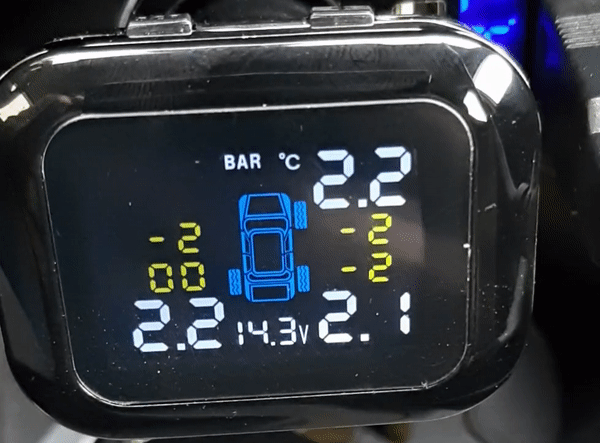 Многие скажут, да толку, все равно чувствуется, когда колесо пробито. Да скажу я вам, но когда медленный прокол, вокруг грязь и слякоть, бывает очень сложно определить 2,2 в колесе или 1,5. Да и не всякий водитель новичок (которым является моя супруга) определит по поведению машины, что с колесом есть проблемы. Пару лет назад я присматривался к таким девайсам, но цена (70-100$) отпугивала. При этой же цене, штука не первой необходимости, но если выручить хоть раз — свои деньги отобьёт. Кроме этого, возможно, легко переустановить на другую машину или другой комплект резины. К минусам отнесу не очень точные показатели (+- 0,1 Бар), и не очень ёмкий аккумулятор. Ну а в плюсы — мониторинг двух диапазонов давления и минимальный и максимальный, но и кроме этого мониторинг температуры. Для современных автомобилей, возможно и не актуально, но подклинивший ступичный подшипник вполне может доставить немало «приятных» моментов. Простота установки и полностью автономное питание — тоже в плюсы. Туда же возможность регулировки граничных значений. И да, вот не думал, но в плюсы полностью переведённую на русский инструкцию, очень не часто такое бывает.✔ ИТОГО