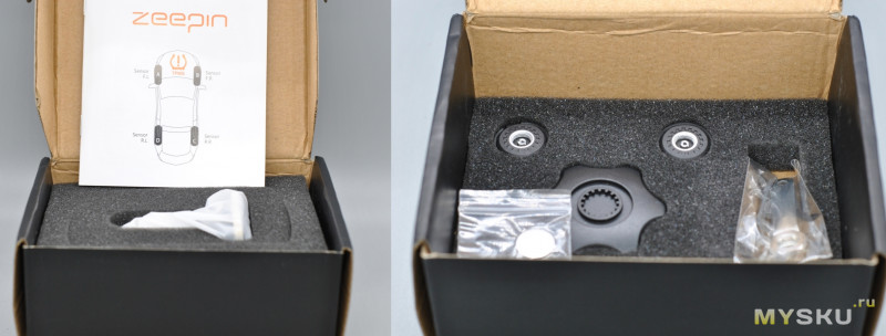 Датчики давления на каждое колесо, с соответствующей маркировкой дабы не ошибиться при накручивании.