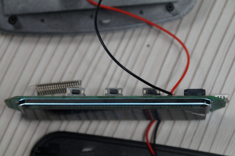 Я решил отпаять солнечную панельку и припаять вместо неё +5 и -5 от вывода USB магнитолы. В момент, когда зажигание не включено, и нет питания от USB, прибор будет работать на встроенном аккумуляторе.