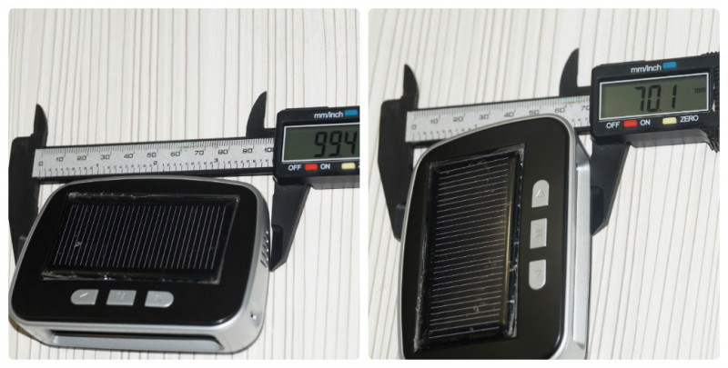 Внутри установлен li-Ion аккумулятор ёмкостью 155 mAh Заряда, которого хватает на почти месяц использования (не более 2 часов в день). Заряжается он или за два солнечных дня, или за семь пасмурных дней.