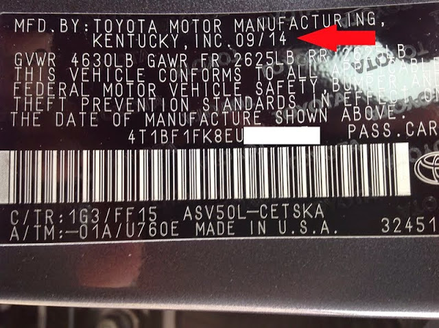 Расположение: Во всем модельном ряду Toyota код краски всегда находится на косяке двери со стороны водителя.