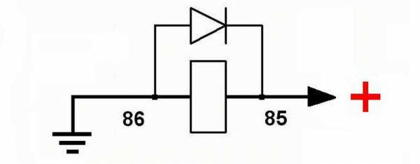 Чтобы реле сработало, на его обмотку подается питающее напряжение. Полярность его – безразлична для реле. Плюс на «85» и минус на «86», или наоборот – без разницы. Один контакт обмотки реле, как правило, постоянно подсоединен к плюсу или минусу, а на второй приходит управляющее напряжение с кнопки или какого-либо электронного модуля.