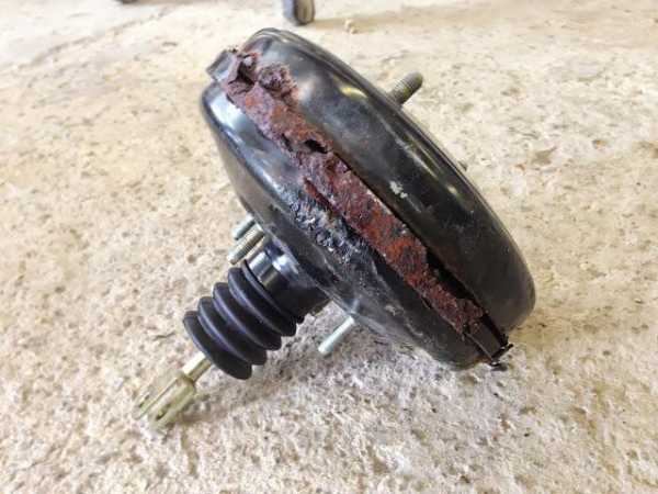 Если он неисправен, то чаще всего это можно определить по характерному шипящему звуку, возникающему при нажатии на педаль тормоза. Такая ситуация может являться свидетельством разгерметизации вакуумного насоса. Причина может крыться в разрыве диафрагмы, уплотнителей или поломке выравнивающего клапана. Чтобы решить проблему, приобретите ремкомплект и замените все резиновые детали. В вакуумный усилитель может попадать воздух и из-за трещин в подводных патрубках: затяните на них хомута или при наличии повреждений замените (в карбюраторной машине такой шланг подходит к нижней его части).