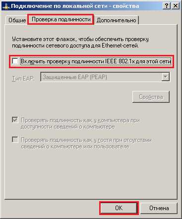 Снимите галочку с кнопки-флажка Проверять подлинность как у компьютера при доступности сведений о компьютере .