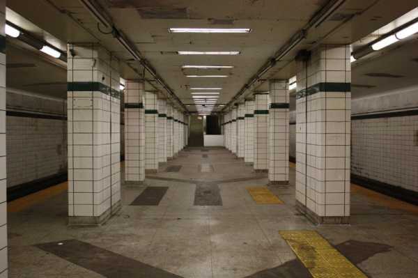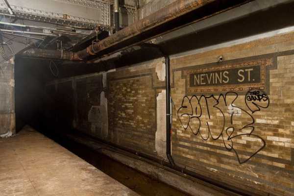 Станция: Нижняя платформа станции Невинс-Cтрит Город: Нью-Йорк, США Год открытия: станция открыта в 1908 году и до сих пор работает, но нижняя платфома так и не была полностью достроена. Изначально планировалось, что по верхней платформе пойдут обычные поезда, а по нижней — ускоренные экспресс-поезда, однако план развития метро изменился и от проекта отказались.