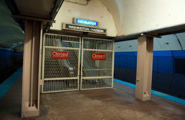 Станция была закрыта временно, на время строительства поблизости соседней станции. Проект был заморожен в 2008 году, однако станция Вашингтон не открыта обратно и по сей день.