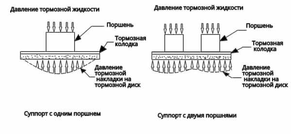 Фиксированные суппорты имеют большее число поршней (два или четыре), они больше по размеру и тяжелее плавающих суппортов. При работе в тяжелых условиях они допускают большее число экстренных торможений до наступления перегрева суппорта.