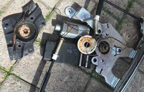 7. Поломка трапеции или рейки стеклоподъемника. В данном случае также потребуется снятие обшивки двери и изъятие всего механизма наружу, чтобы убедиться, что причина была именно в механической части трапеции. Бывает обрыв троса, поломка «бубликов» и шестеренок, и другие механические повреждения.