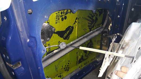 Для шумоизоляции дверей, мы снимаем карты, затем фиксируем стекло и снимаем щит, что достать до внутрянки двери, для качественной укладки материалов. Моем и обезжириваем металл, и укатываем виброизоляцию.