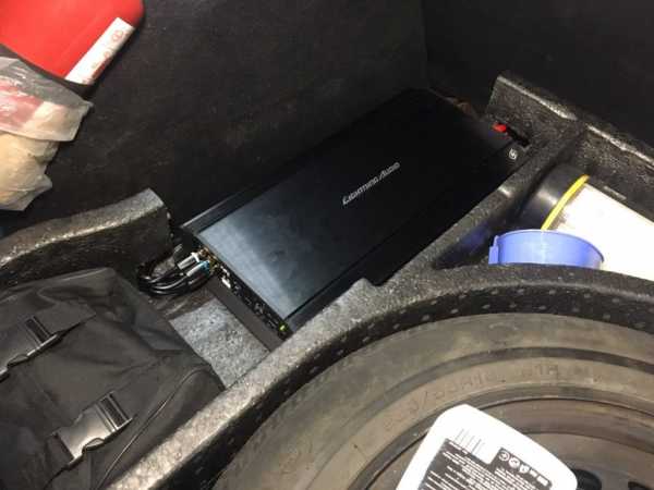 Вот так разместилась установленная нами акустика в данном автомобиле, собираем двери и переходим к установке автомагнитолы и усилителя звука, в данной инсталляции сабвуфер не присутствует, так как очень маленький багажник заказчик категоричен к установке короба, который заберет оставшееся место в багажнике. Усилитель звука, чтоб он не сильно мешал в салоне или багажнике, было решено установить под полом в нише из пенопласта. Правда ее нужно было немного доработать, чтоб углы не полностью закрывали теплоотводы усилителя звука в Ford Focus. Усилитель был выбран не высокой мощности и линейки фирмы Lightning Audio.