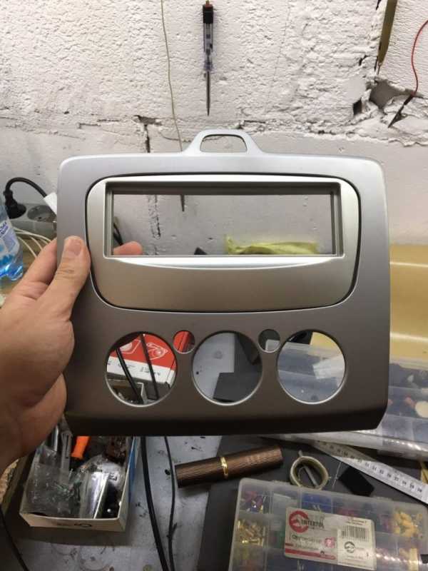 Как видите очень аккуратно он там разместился, и не мешает на спинке сидения, усилитель звука мы настроили и приступили к замене головного устройства Ford Focus, демонтируем его, и для установки нового нам потребуется переходная рамка.