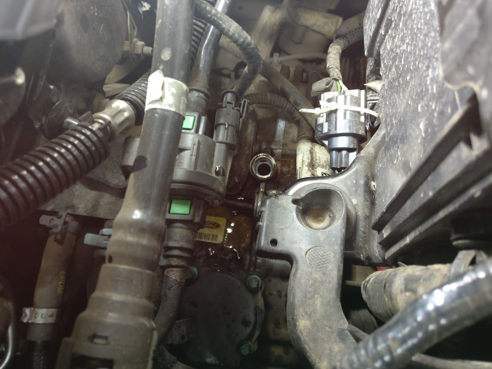 Пока стекает трансмиссионная жидкость, можно поменять масляный фильтр. На форд фокус он расположен левее корпуса коробки.