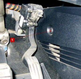 Откручиваем болт пластиковой крышки справа от педали газа.
