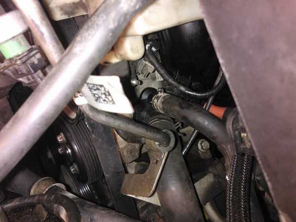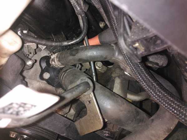 10:513Собственно говоря, так и начался обратный цикл, цикл установки и сборки. Все собирается точно также. Болты затягивать сильно очень не рекомендую, даже несмотря на то, что в пластиковом корпусе есть металлические втулки-ограничители, главная задача – это герметичность, это не стартер, который испытывает адские нагрузки. Потом опять начались мучения с натягиванием шлангов. Мыльный раствор в помощь. Шланги устанавливать только на затянутом термостате. Если затянете их на снятом корпусе, то термостат обратно не вставите, такой фокус не проходит. Затем обратно ставим кронштейн трубки ГУРа и переходим к заливке антифриза. Играем в юных химиков.