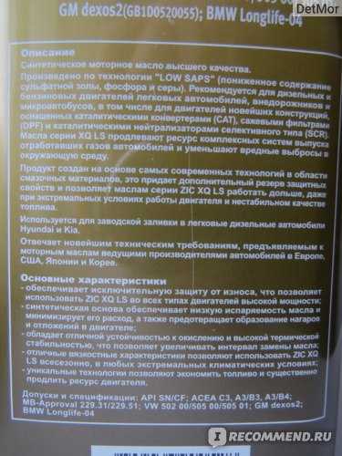 Ну а теперь непосредственно о самом масле ZIC XQ LS 5W30.