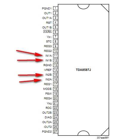 IN1A; IN1B; IN2A; IN2B — нужные нам ножки