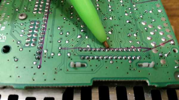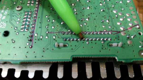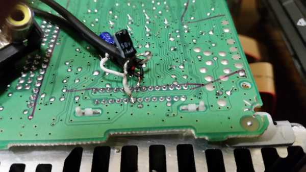 К этим контактам я припаял конденсаторы ( минусовой ножкой к плате).