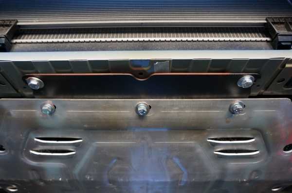 Кое-как установив стойки, начали прикручивать защиту. Задник тоже крепится в определенные отверстия, которые не предоставляется возможности вообще никак не вкрутить болты, ибо подложки, к которым крепятся болты засовываются с внутренней стороны днища, а там просто нет возможно подлезть, все законтролено.