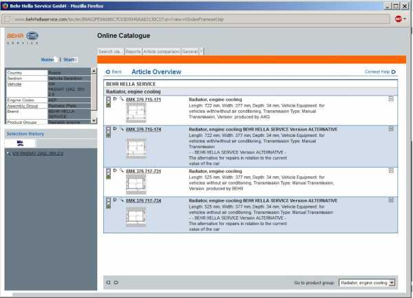 Радиатор охлаждения ставить рекомендуют Valeo, Behr-Hella… Предложений Valeo не обнаружил. Смотрим Behr, оказывается подходит два кода. Открываем оф сайт и каталог каталог BEHR-HELLA