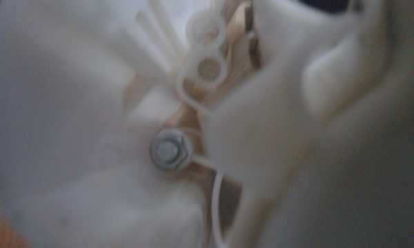 А далее мы видим, что, чтобы снять мотор, надо вынуть внутренности (моторчик с фильтром) из колбы, а они там к сожалению сидят на трех штырях, к которым они приклеены. Я старался разобрать аккуратно и про клей не знал — пробойником стучал в центр крепления, чтобы выбить штырь колбы. Итог — один штырь сломался, один лопнул, один уцелел.