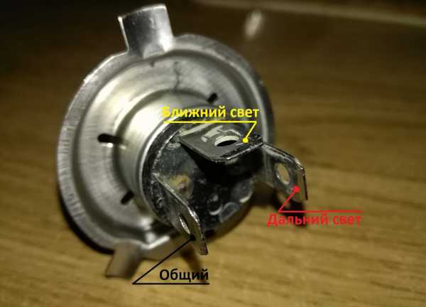 Для памяти, приведу расположение контактов на лампе h5, где какой и для чего.